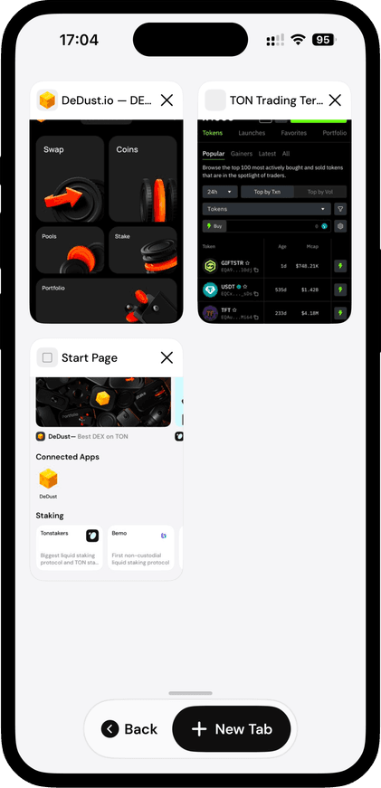 Find everything you need about TON with in-app search — tokens, dApps, and more in one place.